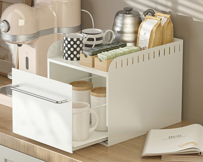 멀티 철제 슬라이드 수납함...양념병, 머그컵, 커피머신